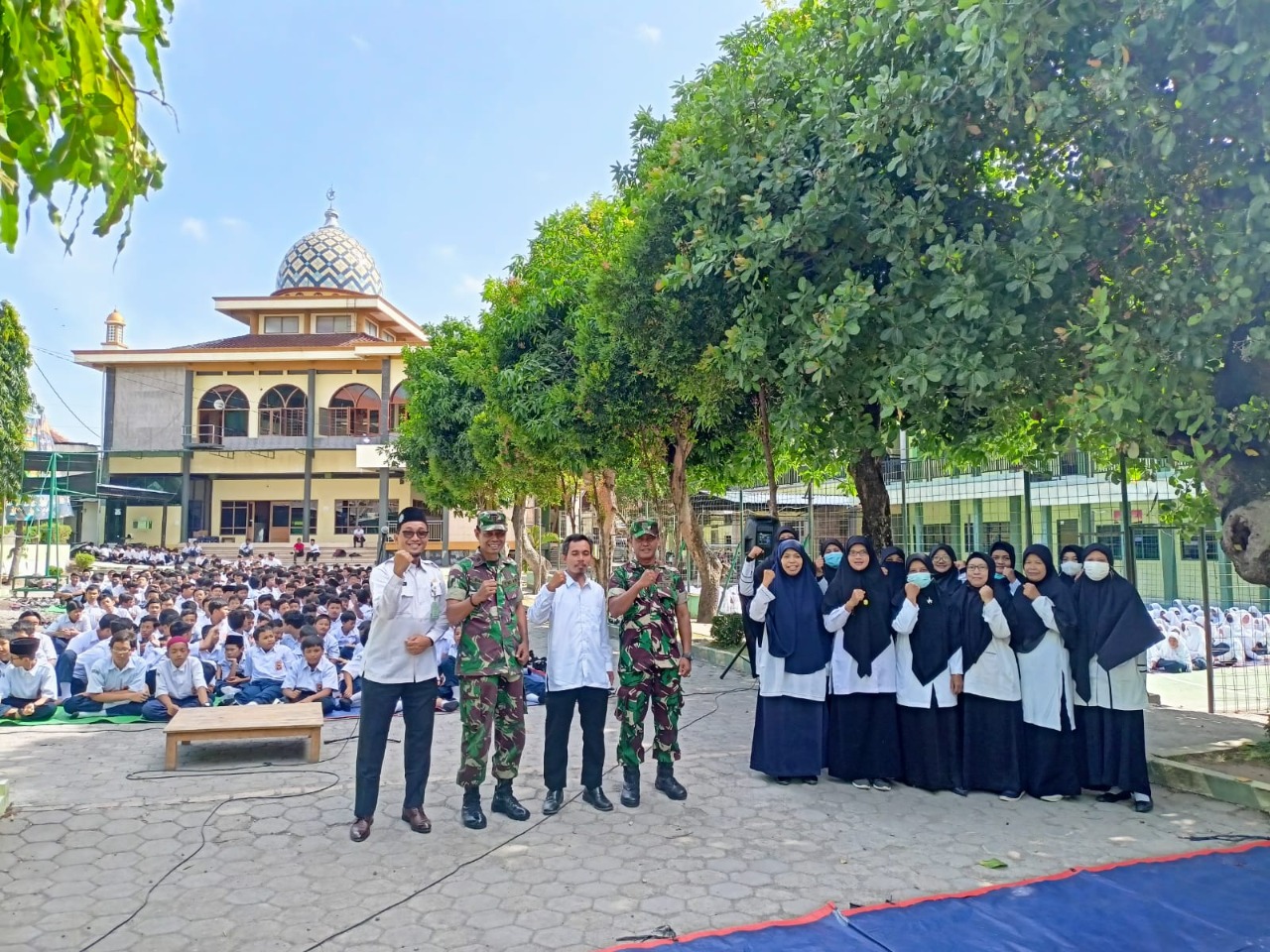Sukoharjo, sindosolo.news – (27/09/2022) Bertempat di halaman Pondok pesantren Imam Syuhodo Jl. KH. Ahmad Dahlan no 151 Dk. Blimbing Rt 4/5 Ds. Wonorejo Kec. Polokarto Kab. Sukoharjo, Kapten Arh Bahrun, ST (Danramil 11/ Polokarto) didampingi Sertu Eddy Nurseno (Babinsa Desa Wonorejo) memberikan materi Wawasan Kebangsaan kepada Siswa siswi MTs Muhammadiyah Blimbing dalam rangka masa jeda Mid semester ganjil.