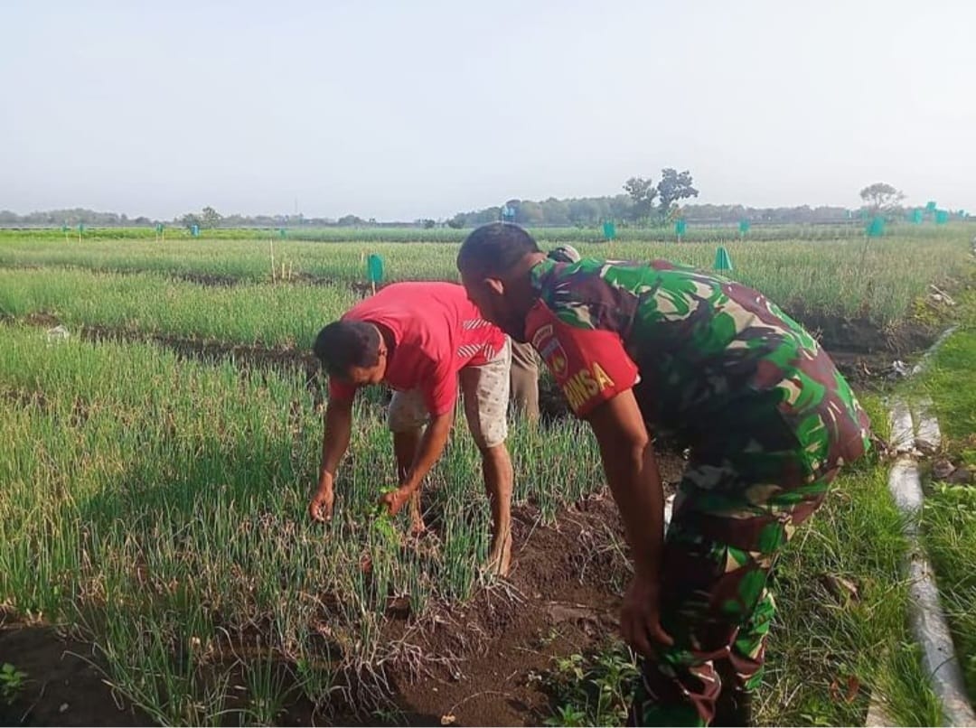 “Setiap tanaman memerlukan perawatan dan pemeliharaan, tak terkecuali pada tanaman bawang merah, diantaranya adalah penyiraman, pemupukan, penyemprotan hama, penyiangan tanaman atau pembersihan gulma tanaman,” terang Babinsa