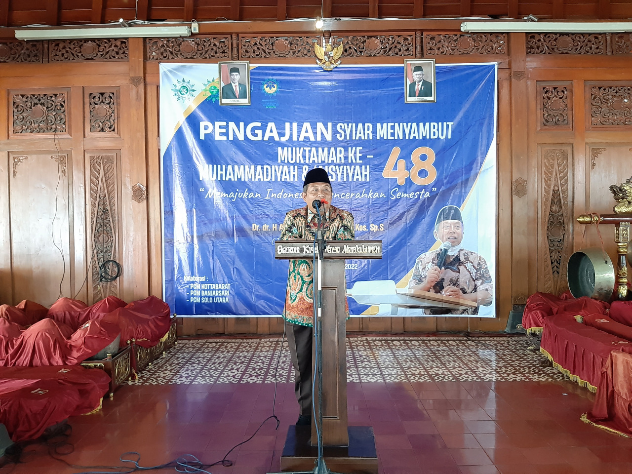 SURAKARTA, SINDOSOLO.NEWS – Sambut Muktamar ke-48 Muhammadiyah Aisyiyah pada November mendatang, Pimpinan Cabang Muhammadiyah (PCM) Kottabarat, Banjarsari, dan Solo Utara berkolaborasi menggelar pengajian syiar Muktamar di Sasana Krida Warga Mangkubumen Banjarsari pada Minggu (16/10). Kurang lebih 500 warga Muhammadiyah hadir dalam pengajian tersebut