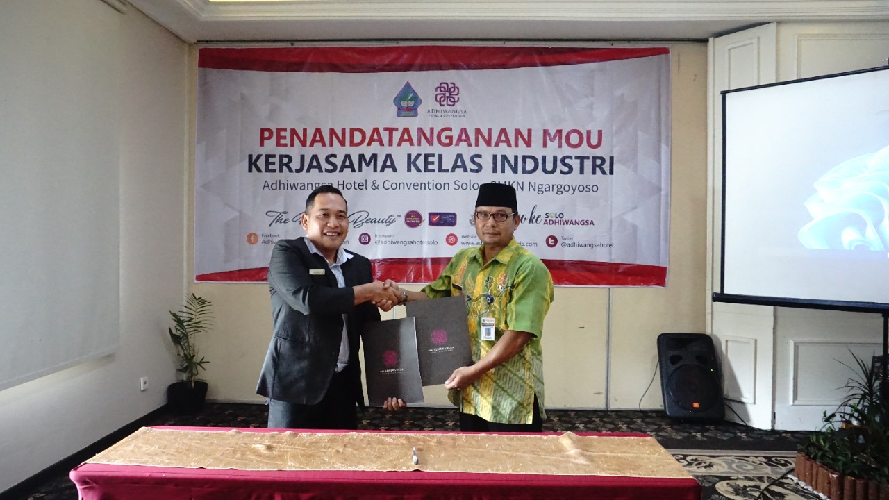Dengan diwakilkan oleh Bapak Darmanato selaku General Manager Adhiwangsa Hotel & Convention Solo bersama Bapak Sukidi, S.Pd, M.Pd selaku Kepala Sekolah SMKN Ngargoyoso.