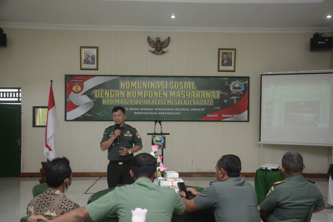 Komandan Kodim 0724/Boyoalli Letkol Arm Ronald F Siwabessy, M.A. yang diwakili Kasdim 0724/Boyolali Mayor Inf Ismael. Sos. mengatakan Komsos bersama dengan Kommas ini sebagai ajang silaturahmi antara TNI khususnya TNI -AD dengan elemen masyarakat di wilayah Kabupaten Boyolali.