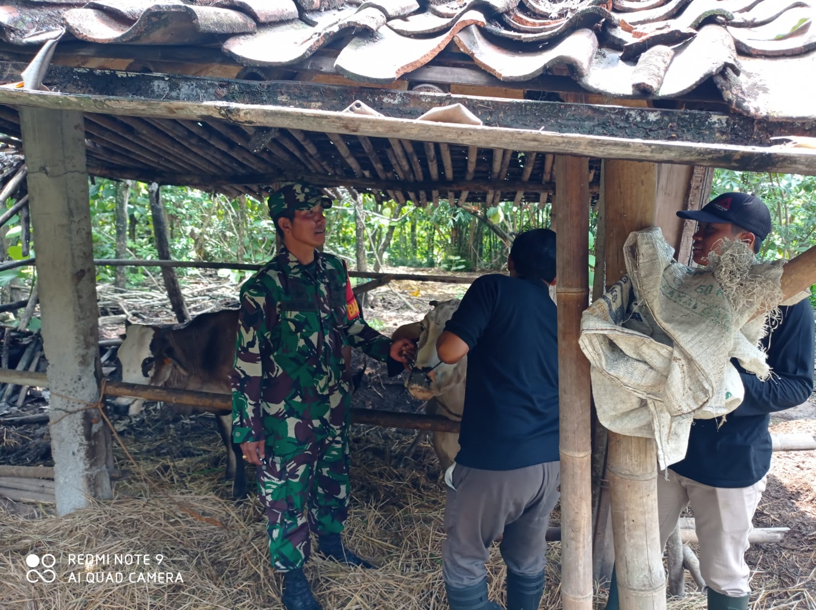 Babinsa Sambi Bantu Proses Vaksinasi PMK di Wilayah Binaan