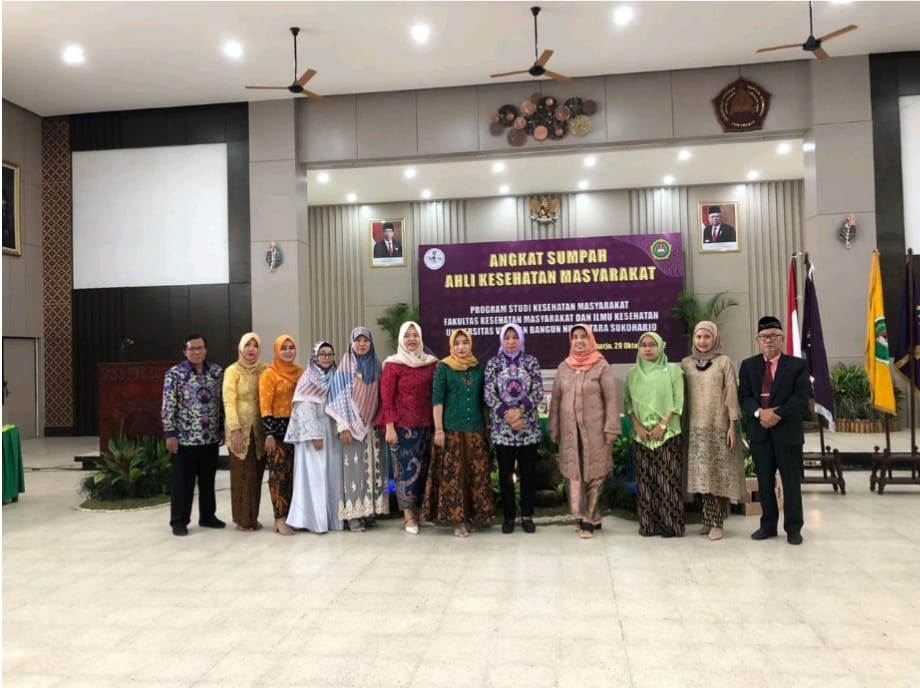 SUKOHARJO, SINDOSOLO.NEWS – (29/10/2022) Fakultas Kesehatan Masyarakat Dan Ilmu Kesehatan (FKMIK) Universitas Veteran Bangun Nusantara (Univet Bantara) menyelenggarakan upacara angkat sumpah Ahli Kesehatan Masyarakat ke-4 bagi lulusan program studi S1 Kesehatan Masyarakat. Acara digelar di Auditorium kampus Univet Bantara. Ketua program studi Nine Elissa, S.KM, M.Kes dalam laporannya menyampaikan bahwa angkat sumpah diikuti oleh 119 lulusan S1 Kesehatan Masyarakat baik dari dalam maupun diluar Univet Bantara Sukoharjo. Angkat sumpah ahli Kesehatan masyarakat merupakan salah satu syarat dalam mendapatkan Surat Tanda Registrasi sebagai ahli kesehagan masyarakat, tambahnya.