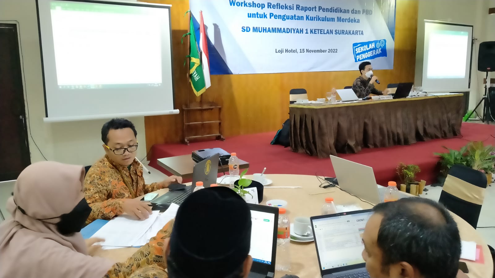 SOLO, SINDOSOLO.NEWS – SD Muhammadiyah 1 Ketelan Surakarta yang merupakan Sekolah Penggerak Kemendikbud-Ristek menggelar Workshop Refleksi Raport Pendidikan dan Perencanaan Berbasis Data (PBD), di Loji Hotel, Majapahit Meeting Room Lantai 7 Jl. Hasanudin 134 Punggawan Solo, Selasa (15/11/2022).