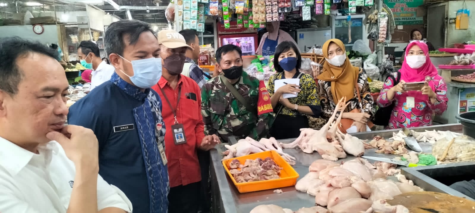 SURAKARTA, SUNDOSOLO.NEWS – Babinsa Kelurahan Sudiroprajan Koramil 04/Jebres Kodim 0735/Surakarta Serda Agus S mendampingi  Tim Satgas Pangan  Tim Pengendali Inflasi Daerah (TPID) Prov. Jateng dan Tim Satgas (TPID) Surakarta melakukan Pantau Harga dan Ketersediaan stok Kebutuhan Pokok Masyarakat di  Pasar gede , jln Urip Sumoharjo Kelurahan Sudiroprajan Kecamatan Jebres,, Kamis (22/12/2022).