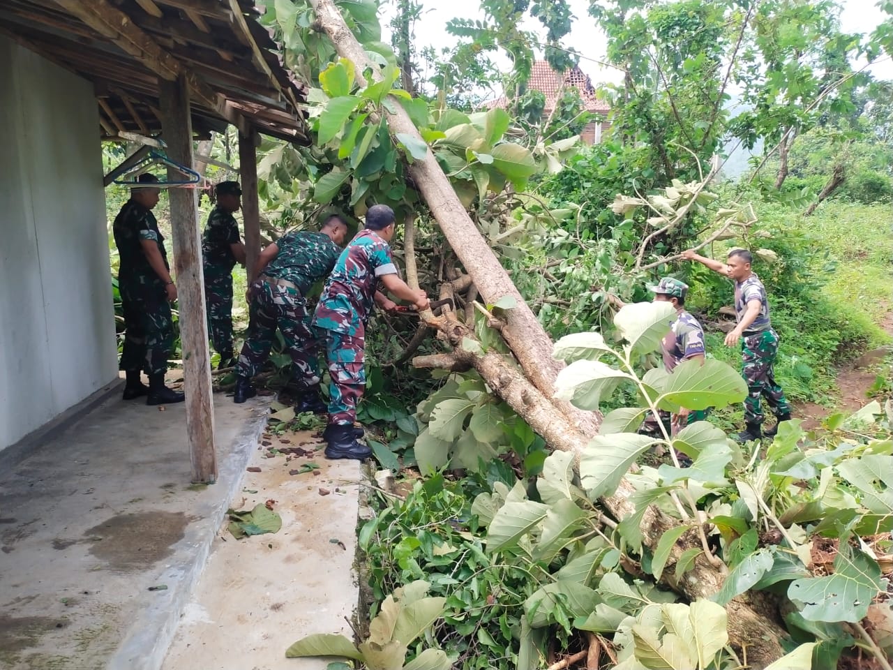 “Kita upayakan maksimal hari ini kita fokuskan pada pembersihan, penyingkiran pohon tumbang dan membantu memperbaiki rumah-rumah yang rusak ringan, kita lihat beberapa anggota tengah membantu memasang kembali memperbaiki kaso serta atap rumah yang porak poranda diterbangkan angin,” ungkap Danramil 03 Bulu Kapten Inf Suharno.