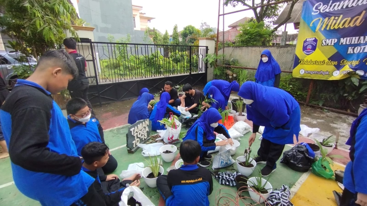 SOLO, SINDOSOLO.NEWS – Siswa SMP Muhammadiyah Program Khusus (PK) Kottabarat Surakarta mengikuti kegiatan perlombaan Jumynem Ceria (Jumat Yuk Nanem Ceria) di sekolah pada Jumat (20/1). Kegiatan yang diikuti 345 siswa kelas 7, 8, dan 9 tersebut bertujuan meningkatkan kecintaan dan kepedulian siswa terhadap lingkungan hidup.