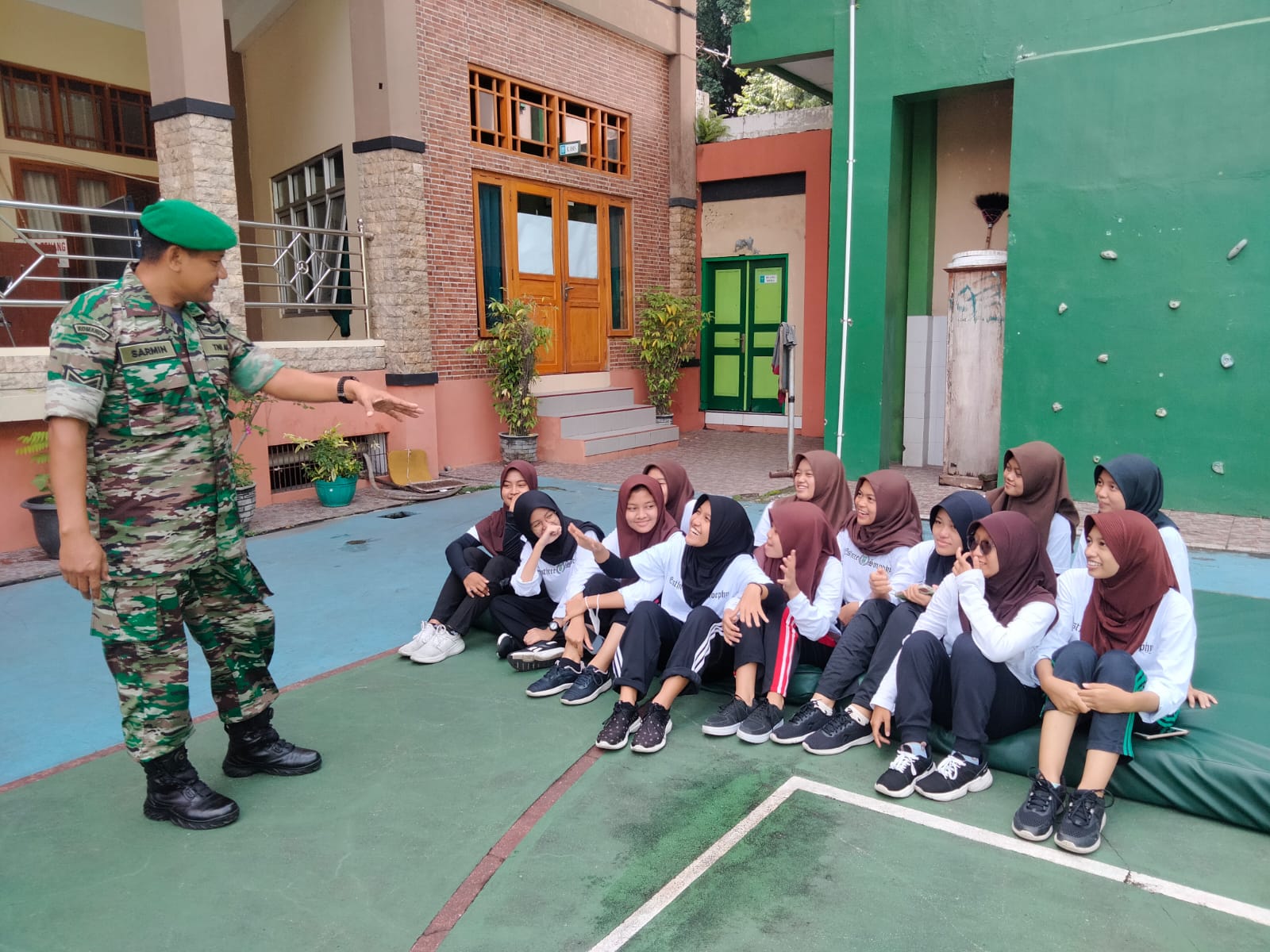 SURAKARTA, SINDOSOLO.NEWS – Babinsa Kelurahan Tipes Koramil 03/Serengan Kodim 0735 Surakarta Serka Sarmin dan Sertu S.Anjasmoro melaksanakan Pembinaan Perlawanan Wilayah (Wanwil) dengan Siswa-Siswi SMAN 7 Surakarta Jl. Muh. Yamin no. 79 Kelurahan Tipes Kecamatan Serengan Kota Surakarta, Surakarta, pukul 10.00 Wib (24/03/2023)