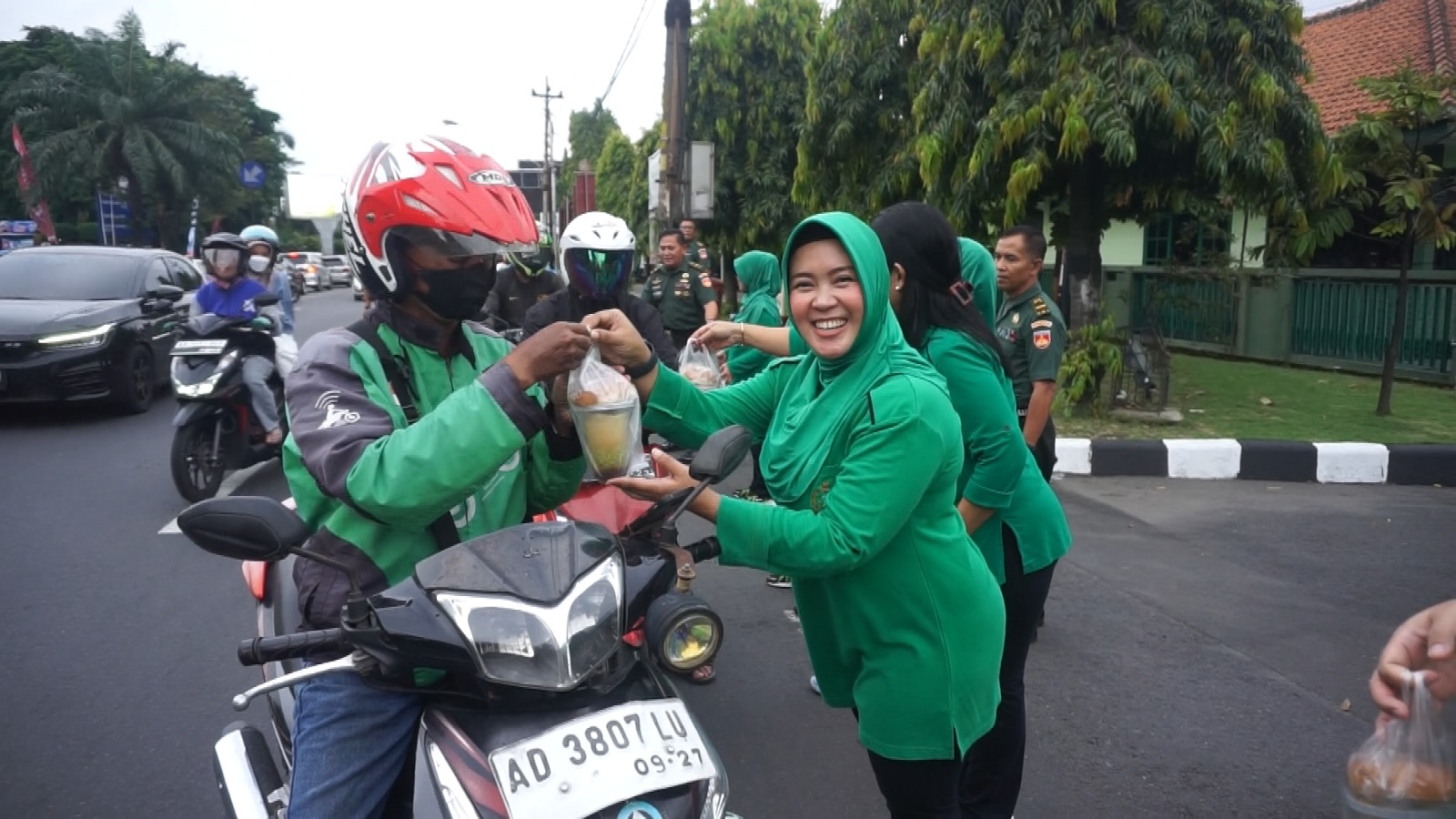 Jelang Berbuka Puasa, Persit KCK Cabang L Kodim 0735/Surakarta Bagikan Takjil Kepengguna Jalan
