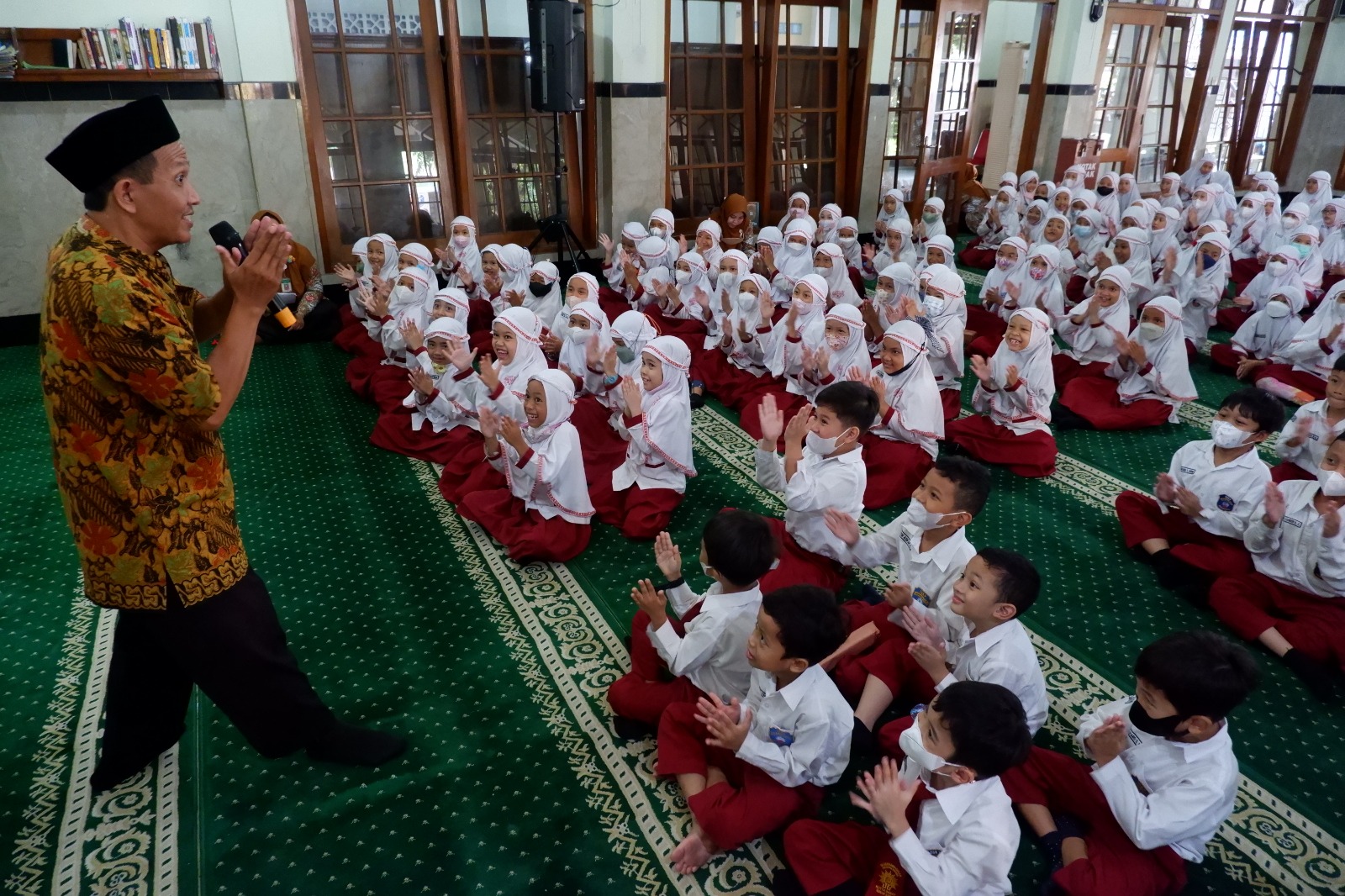 Kegiatan halalbihalal dibagi menjadi dua sesi. Pertama untuk murid kelas I, II, dan III, yang diisi dongeng oleh Kak Juni.