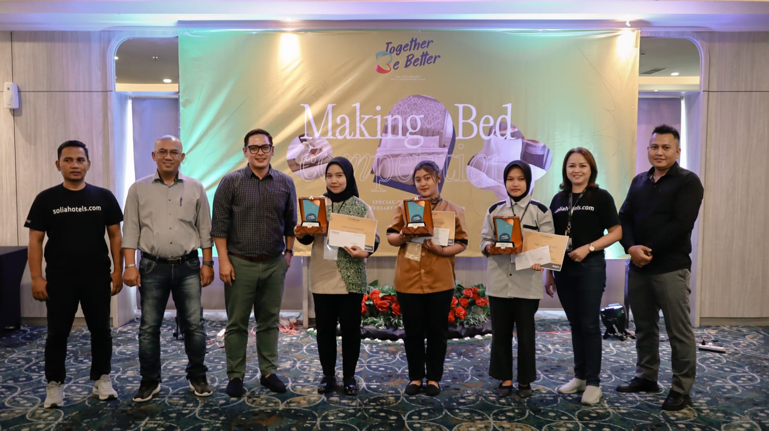 “Acara ini gratis, tanpa di pungut biaya sepersen pun dari peserta lomba, dikarenakan acara ini adalah untuk memperingati anniversary hotel Solia Yoso yang ke tiga, selain itu tujuan kegiatan ini adalah untuk menjalin silaturahmi antara hotel dengan sekolah/ Lembaga pedidikan perhotelan serta meningkatkan skill/ keterampilan siswa dalam bidang “making bed” tutur Lisa Halim selaku exeutive Assistant Manager.