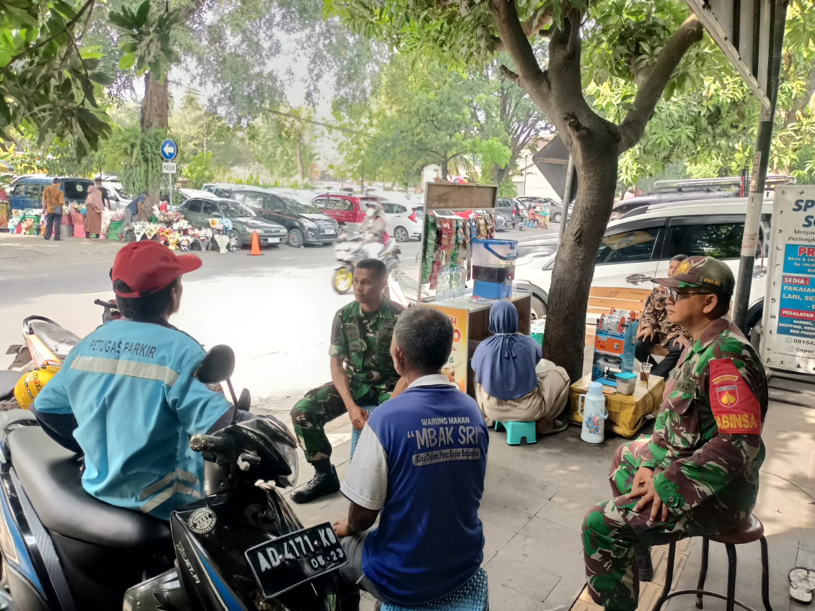 Surakarta,Sindosolo.news – Demi terciptanya keakraban serta meningkatkan hubungan kerja yang baik di wilayahnya, Babinsa Kelurahan Sumber Koramil 02/Banjarsari Kodim 0735/ Surakarta Sertu Yusuf dan Serda Dadan melaksanakan Komsos maupun menjalin keakraban dengan Warga Binaan yakni Baoak Tejo yang bekerja sebagai juru parkir disepanjang jalan Letjen Suprapto, Kelurahan Sumber, Jumat (22/09/2023)