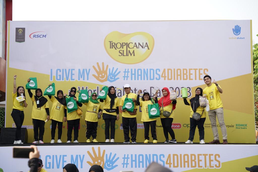 SOLO, SINDOSOLO.NEWS – 12 November 2023, Menyambut Hari Diabetes Sedunia yang jatuh pada 14 November mendatang, Tropicana Slim berkolaborasi dengan RSCM-FKUI (Rumah Sakit Cipto Mangunkusumo – Fakultas Kedokteran Universitas Indonesia) dan Komunitas Sobat Diabet kembali menyelenggarakan kampanye #Hands4Diabetes2023 dengan misi mengajak masyarakat Indonesia agar lebih peduli untuk mencegah dan melawan diabetes.