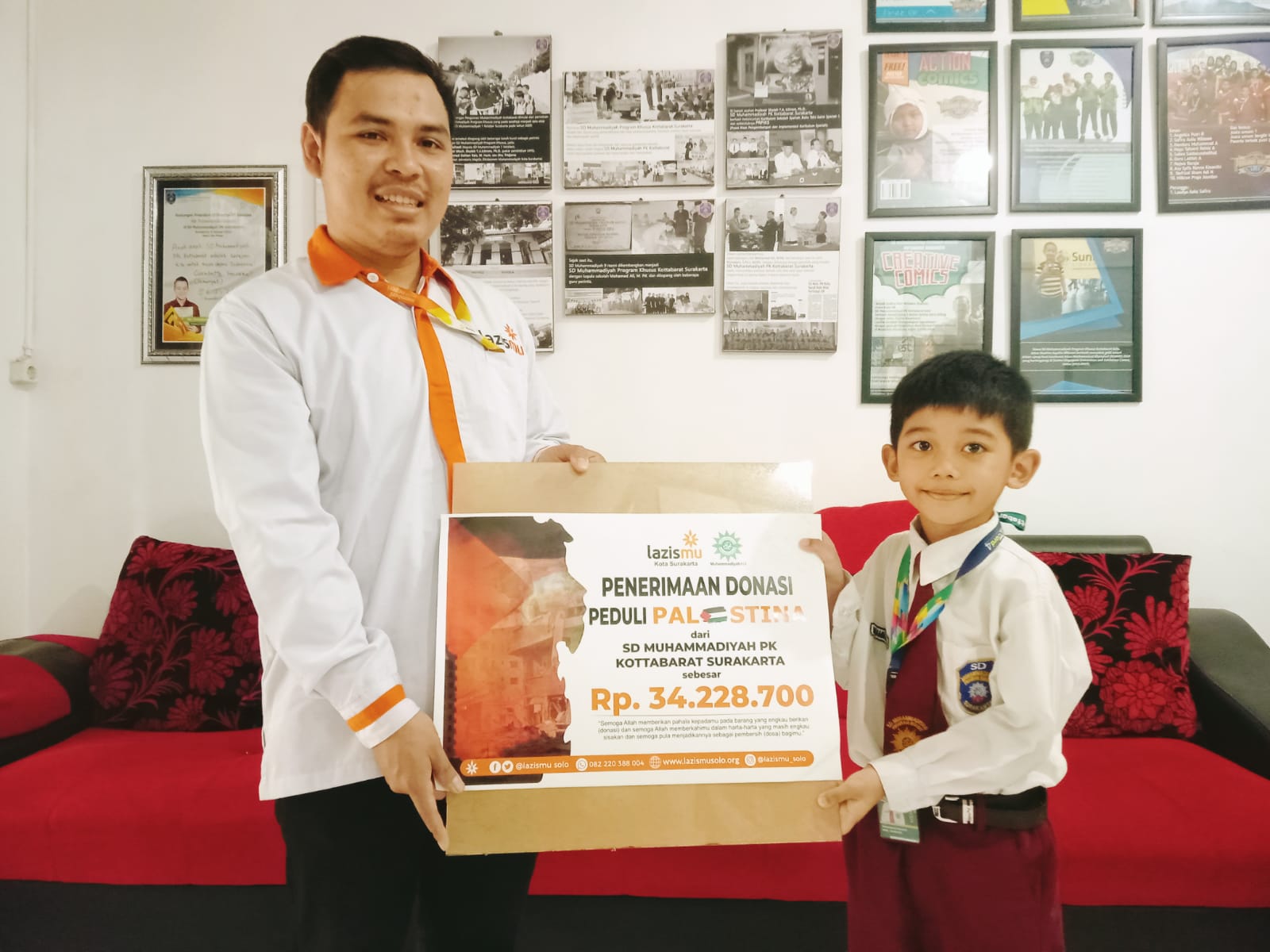 Melalui kegiatan yang bertajuk “Kencleng Surga untuk Palestina,” SD Muhammadiyah Program Khusus Kottabarat Surakarta berhasil menghimpun dana kemanusiaan sejumlah 34,2 juta rupiah dan disalurkan melalui Lazismu Solo, Senin (13/11/2023).