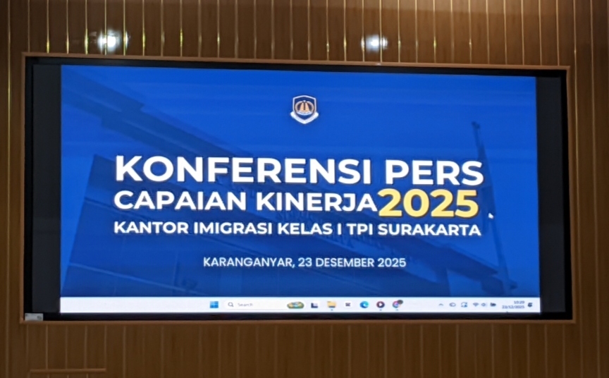 SINDOSOLONEWS.COM | SURAKARTA – Kantor Imigrasi Kelas I TPI Surakarta yang beralamat di Jln. Adi Sucipto No.8, Blulukan, Kecamatan Colomadu, Kabupaten Karanganyar, Jawa Tengah menggelar Konferensi Pers Capaian Kinerja Tahun 2025 Kantor Imigrasi Kelas I TPI Surakarta, Selasa (23/12/2025).
