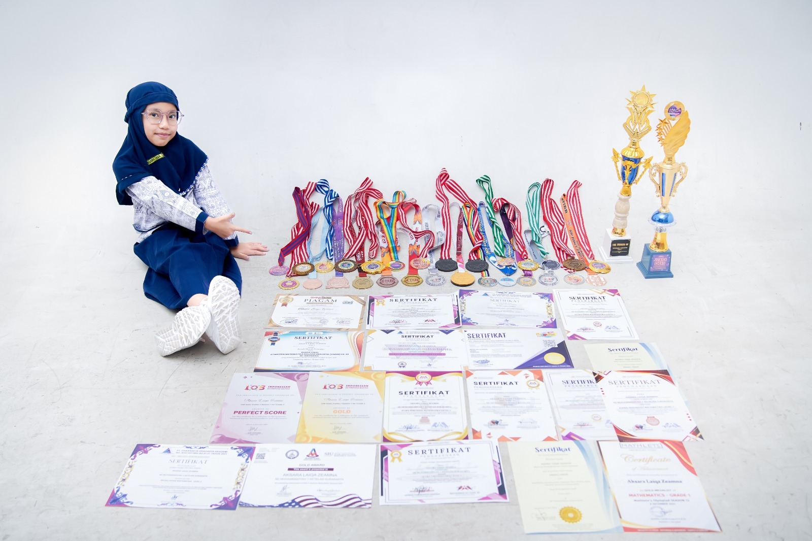 Pada tingkat provinsi Jateng dan DIY, ia meraih Medali Emas OMNI Sains 2025, KMSI 2025, dan OMNAS 2026 serta Medali Perak CEO 2025 dan KMT 2025. Sementara di tingkat regional, Aksara meraih Juara 1 Piala Walikota Surakarta-Warga Math Competition 2025 serta Juara 1 Piala Inspirasi Wakil Walikota Surakarta – Youth Inspiration Summit 2026. (2jatmiko/Obie/r.)
